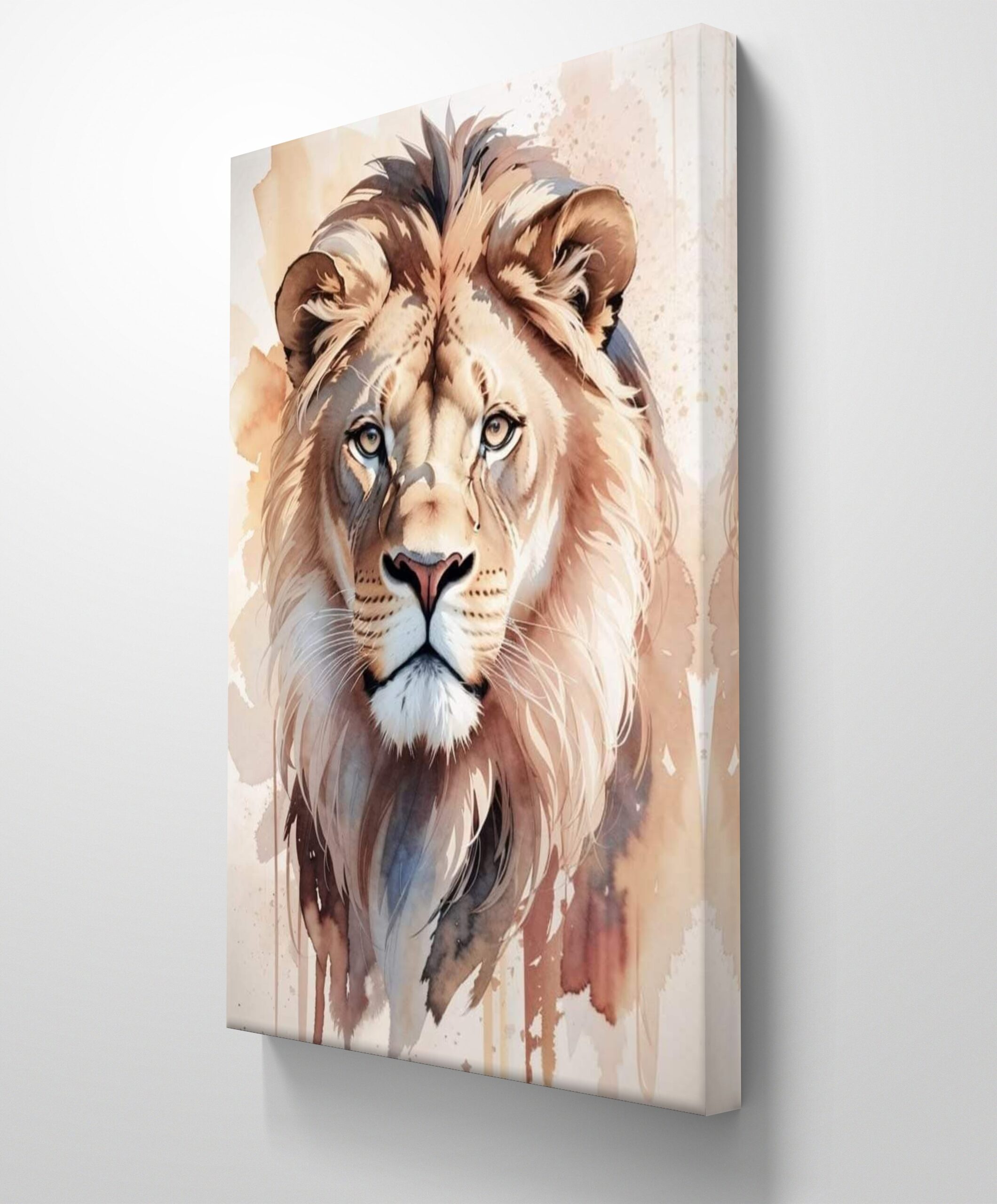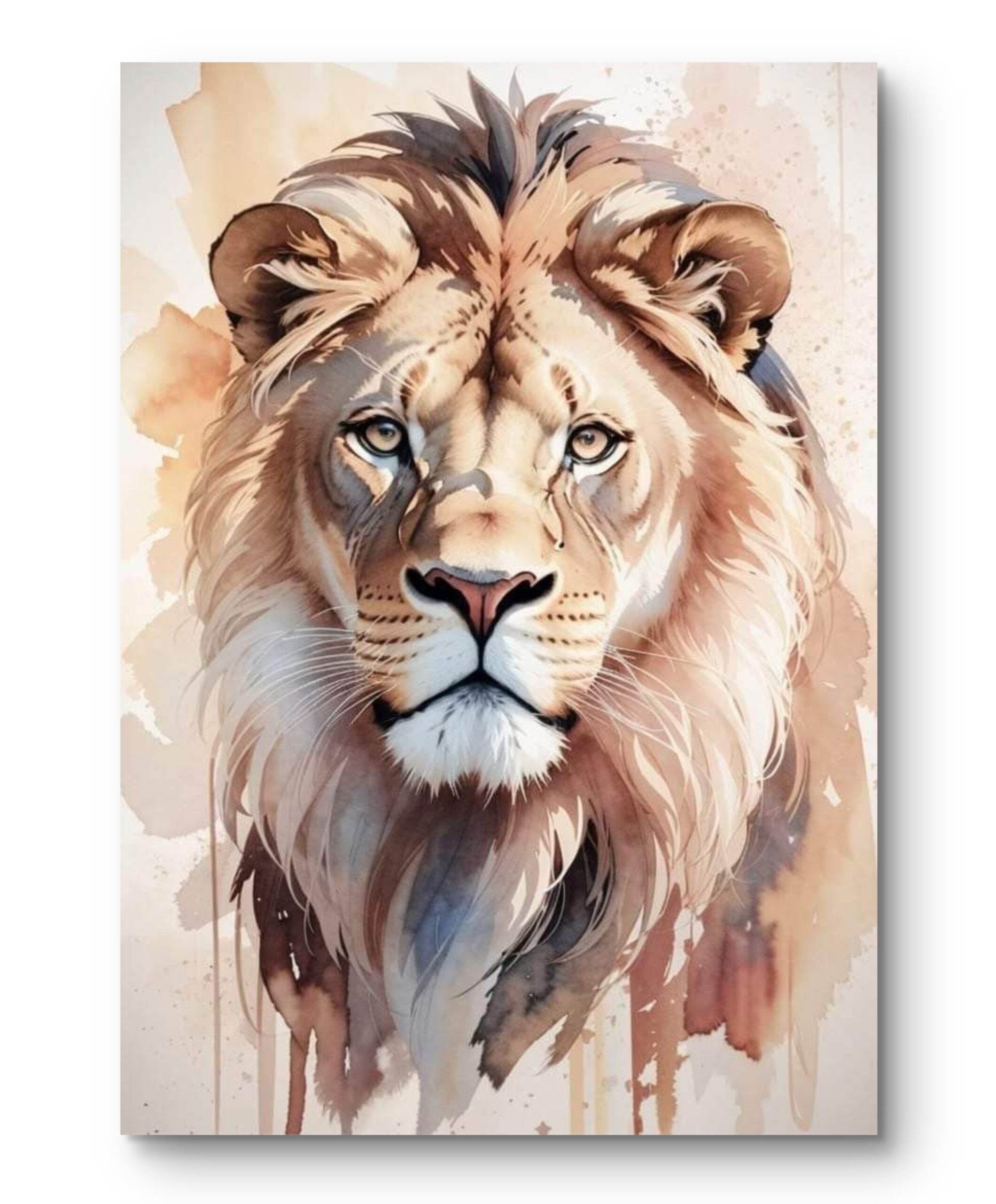 Bajo un estilo acuarela contemporánea, la pieza destaca por su exquisita paleta de tonos arena, ocre y tierra. Las pinceladas fluidas y las veladuras transparentes crean una textura visual ligera, mientras que el contraste de luces en la mirada aporta un realismo magnético que redefine el minimalismo moderno.