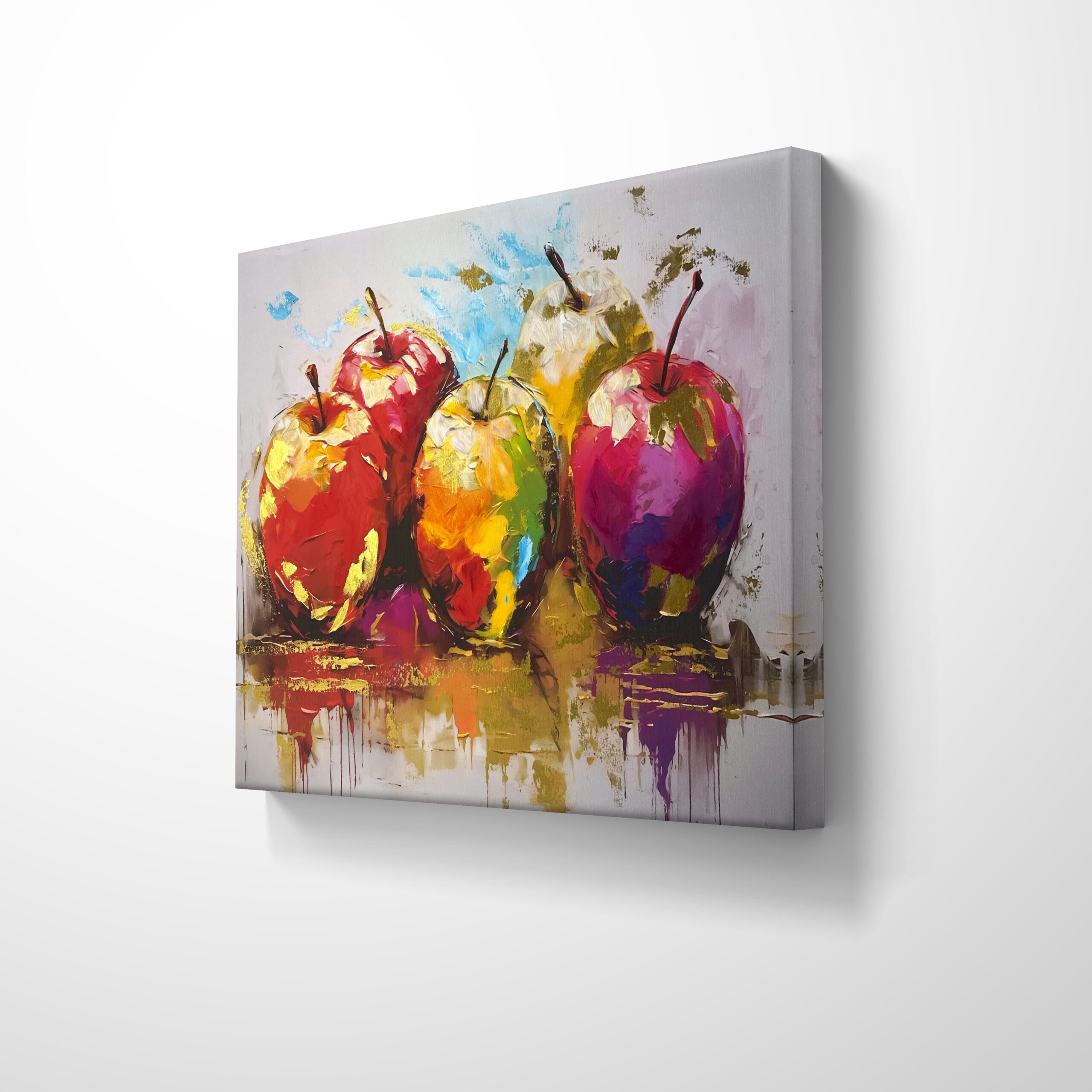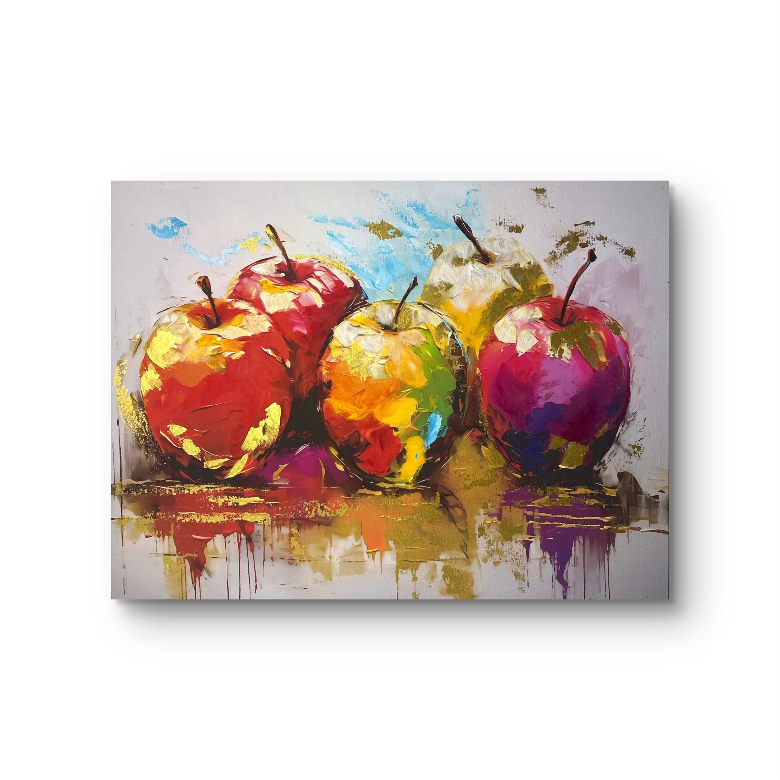 Este cuadro de manzanas es un estallido de energía que transforma cualquier ambiente. Los tonos intensos y las pinceladas expresivas crean una atmósfera cálida, moderna y vibrante. Perfecto para cocinas, comedores o salas donde quieres que reine la frescura, el optimismo y el arte contemporáneo.