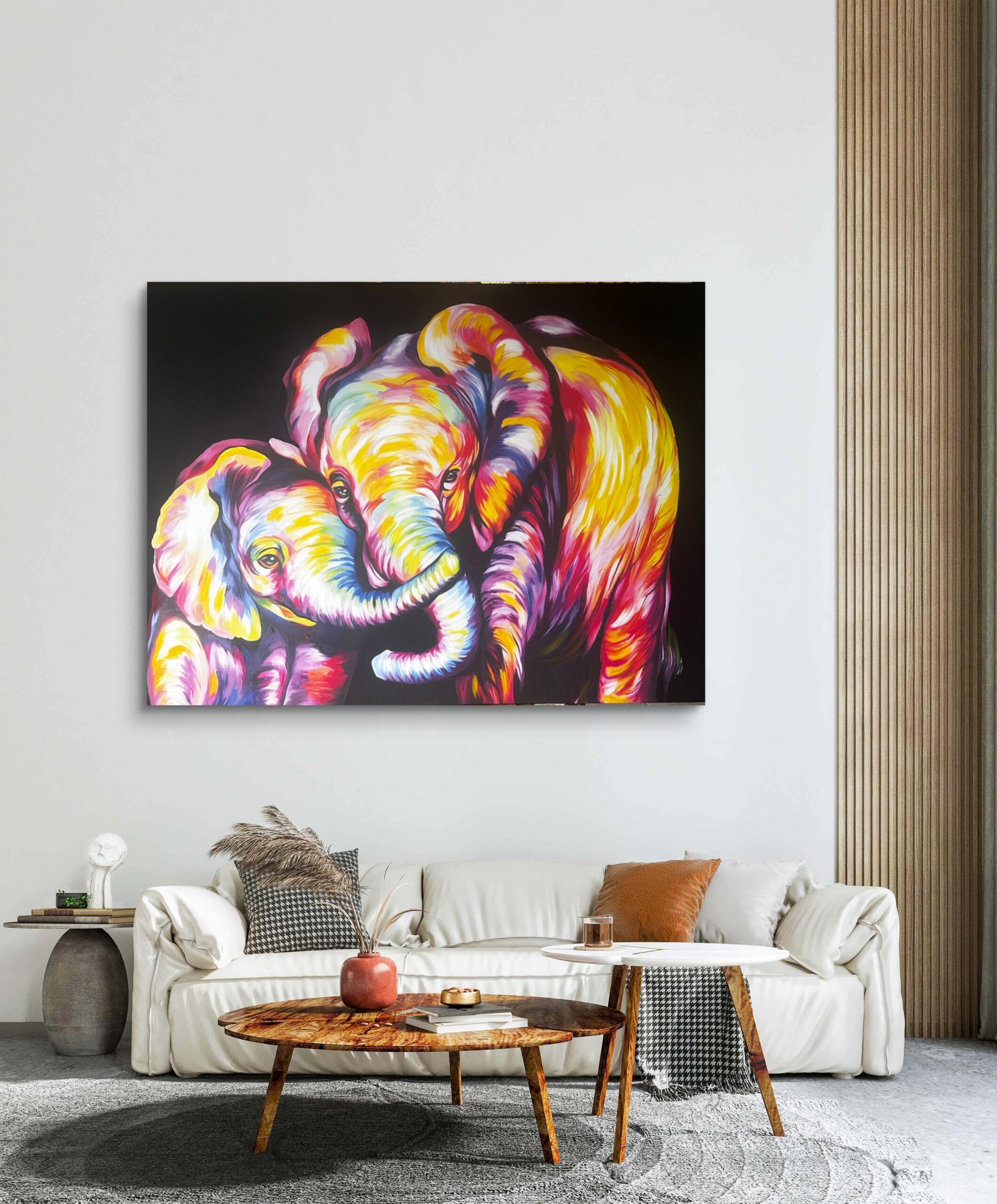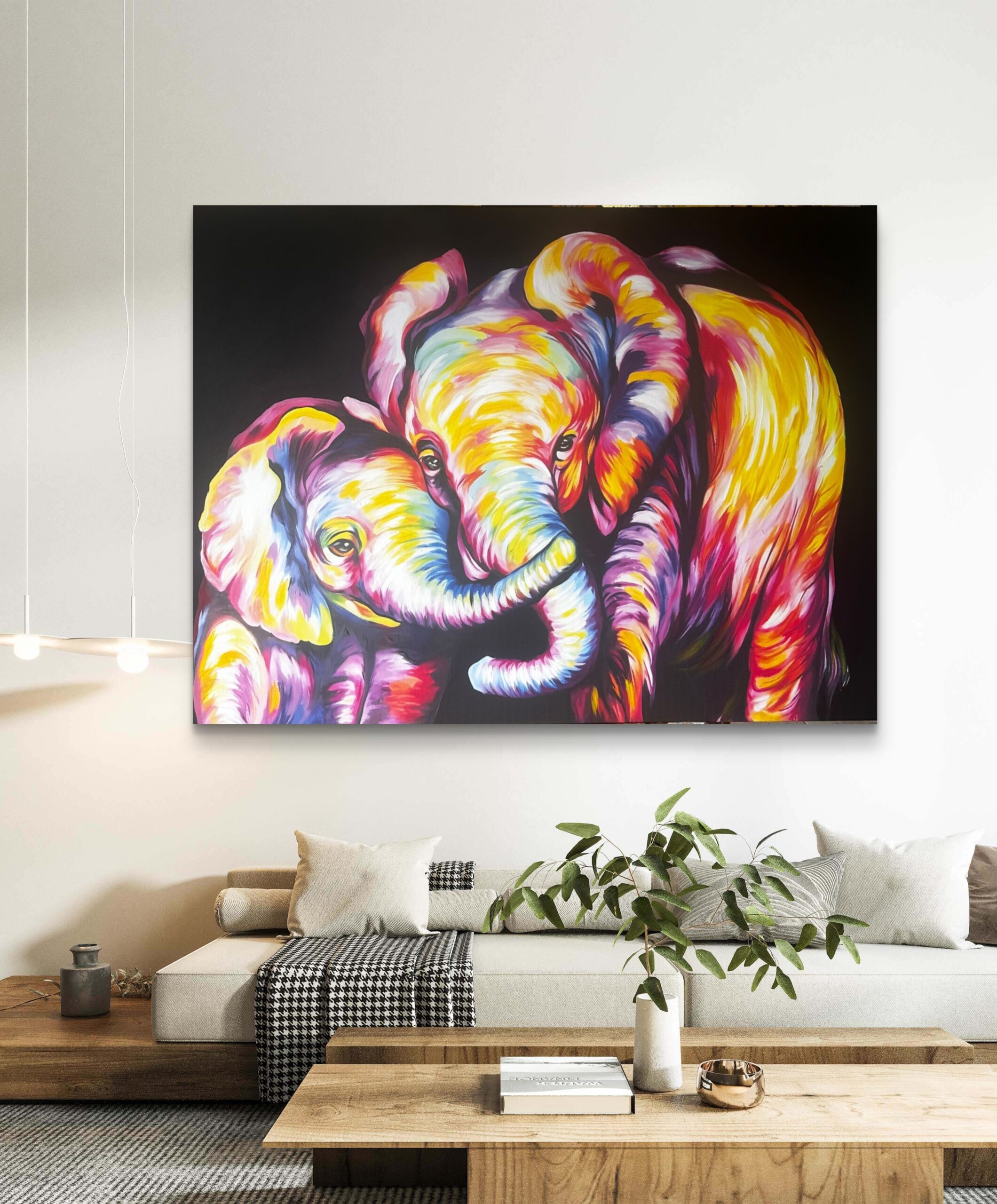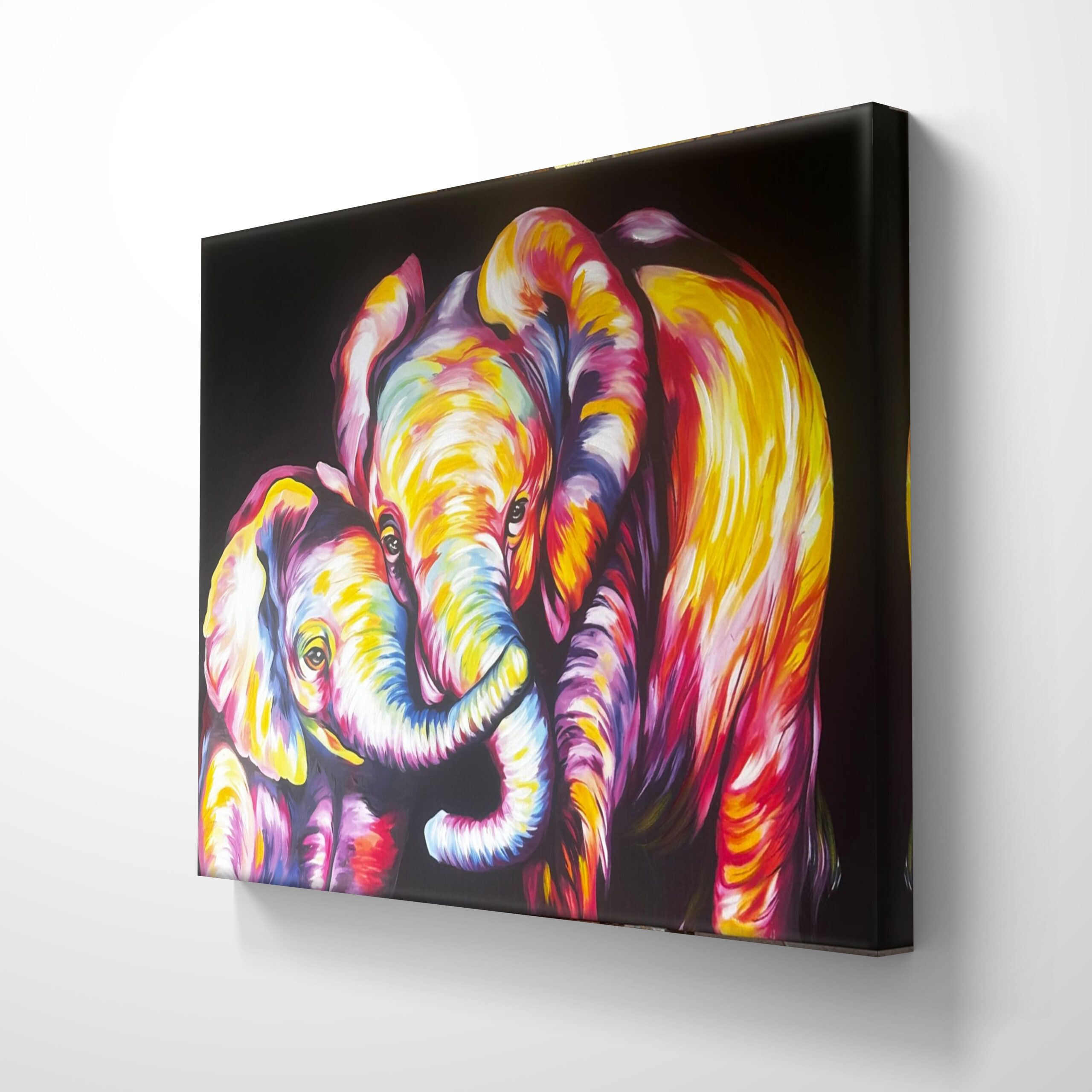 Esta pareja emana una profunda sensación de conexión, protección y amor incondicional. La interacción entre los elefantes transmite una serenidad poderosa que transforma cualquier estancia en un refugio acogedor. Es ideal para salas de estar o dormitorios, aportando una energía vitalista y equilibrada que invita a la calma y la alegría familiar.