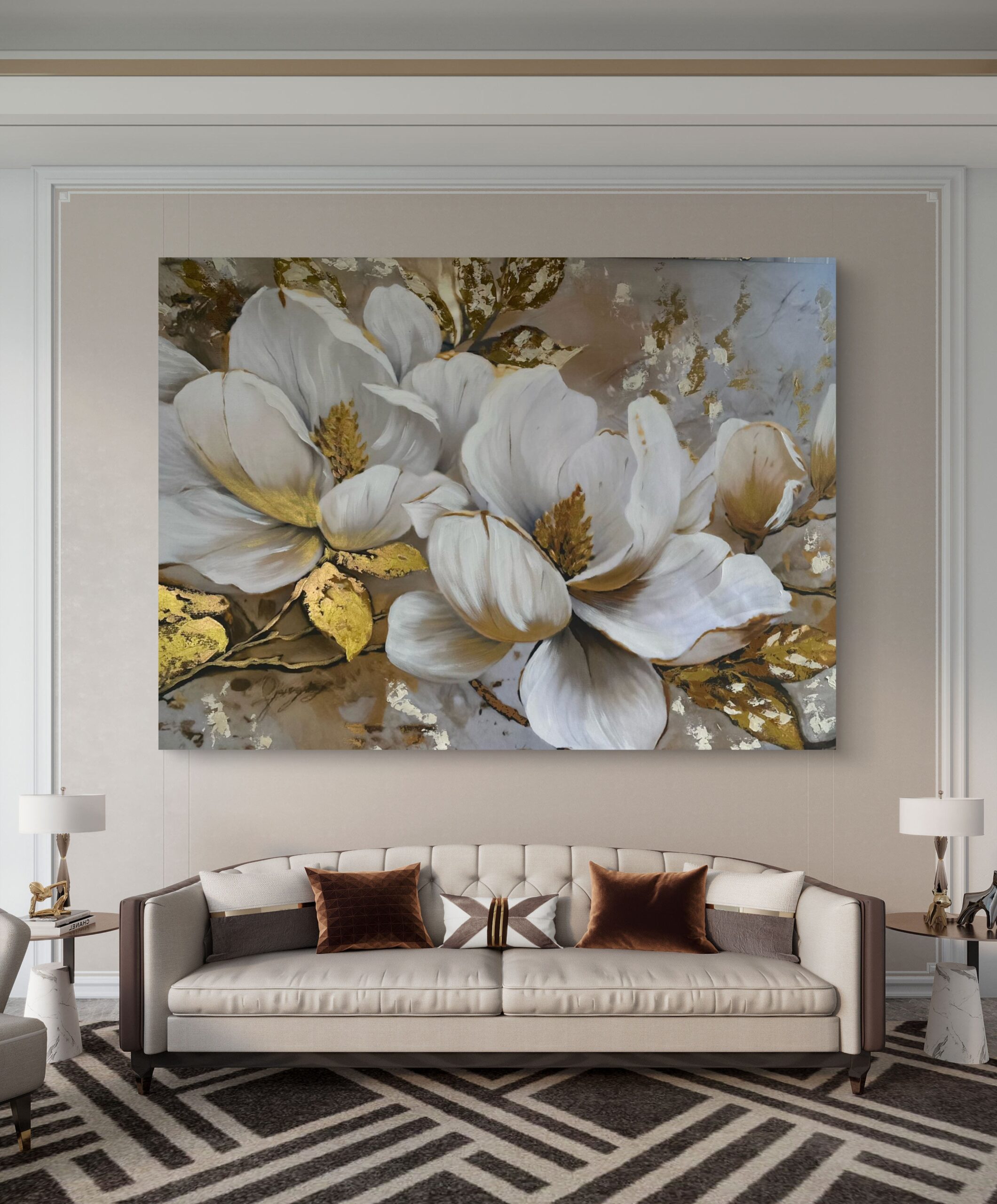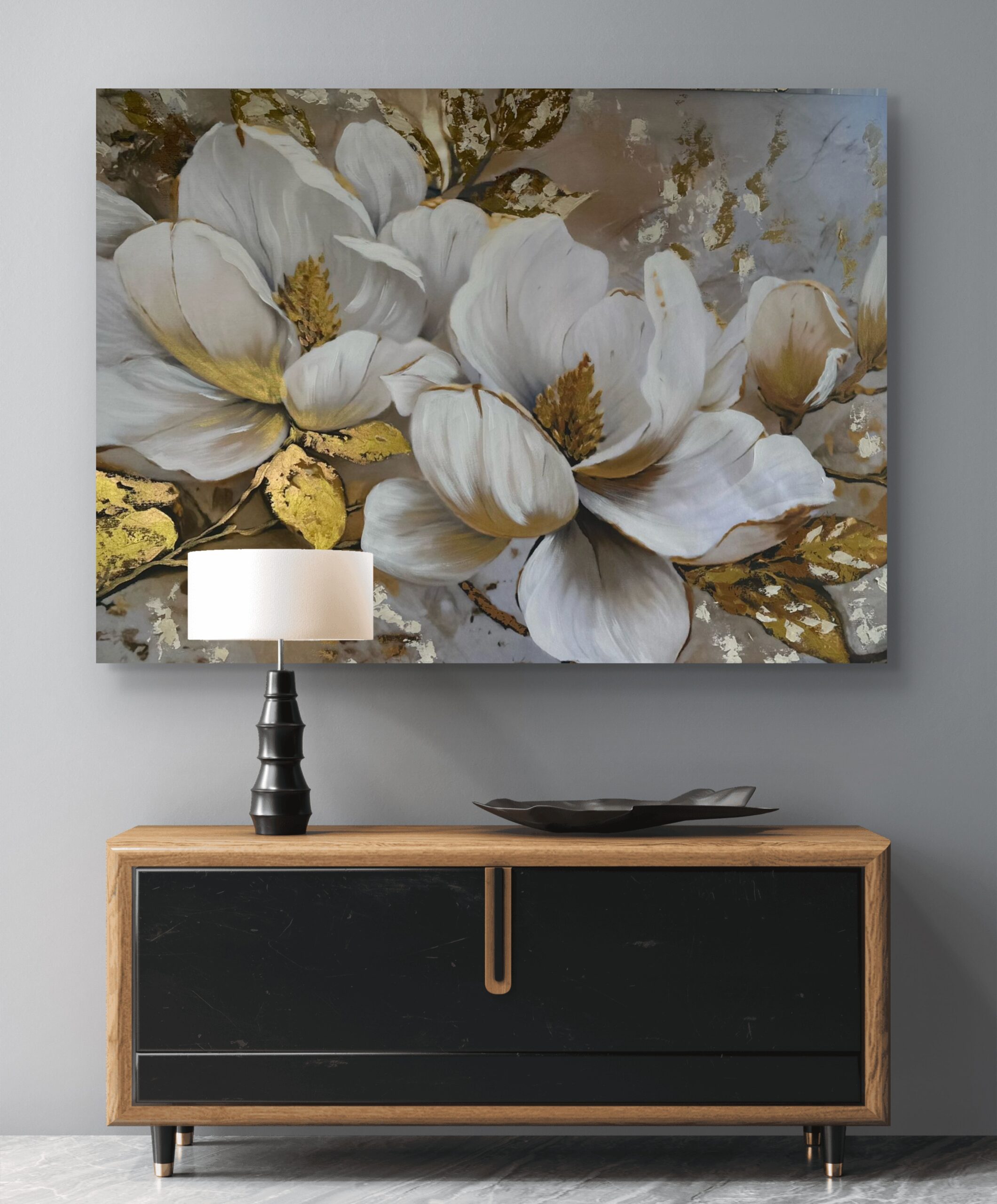 Esta obra simboliza la pureza y el renacimiento. Sus magnolias abiertas invitan a la serenidad y la gratitud, recordándote la belleza de florecer incluso en la calma. Es un ancla visual de paz y elegancia espiritual para tu hogar.