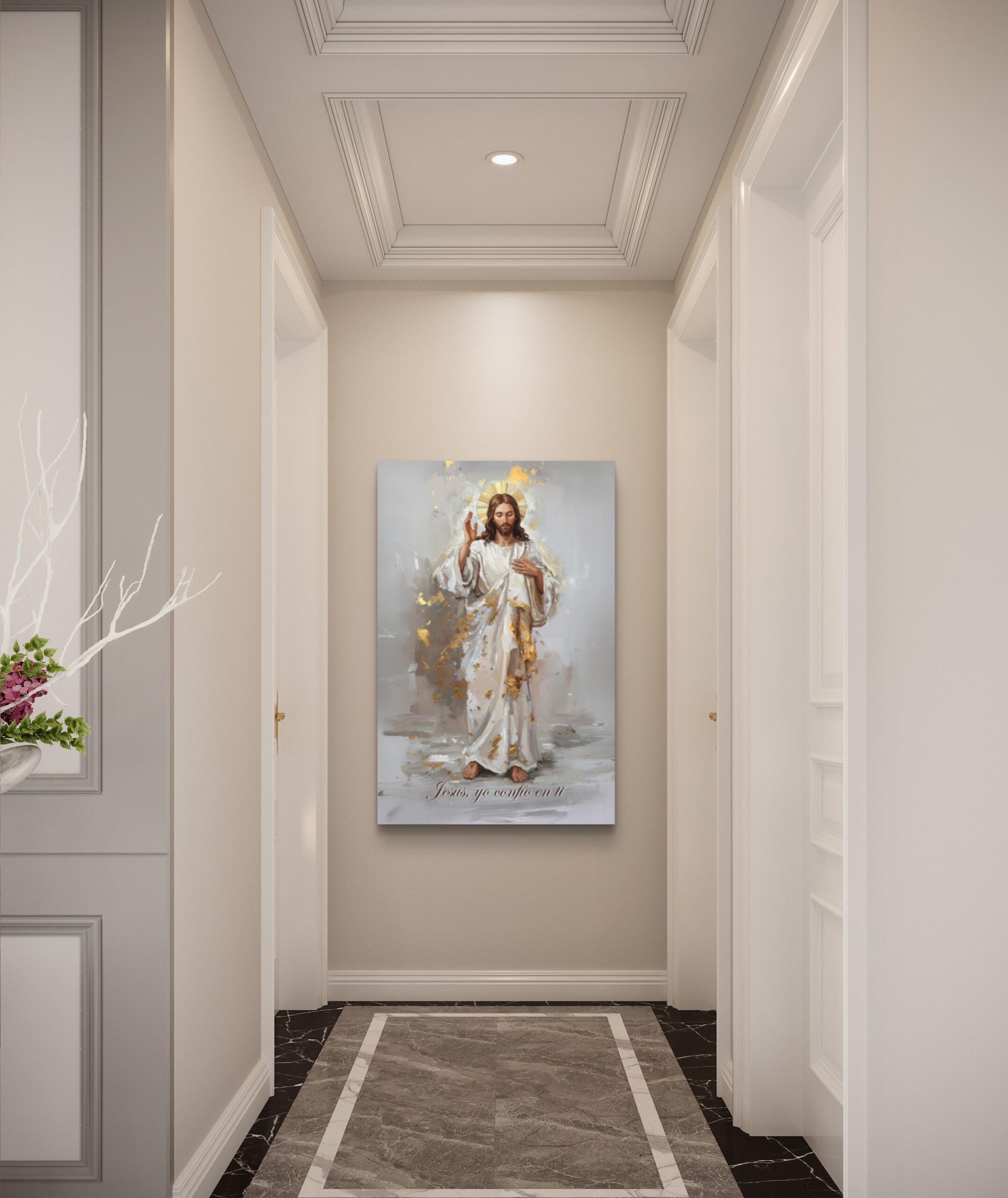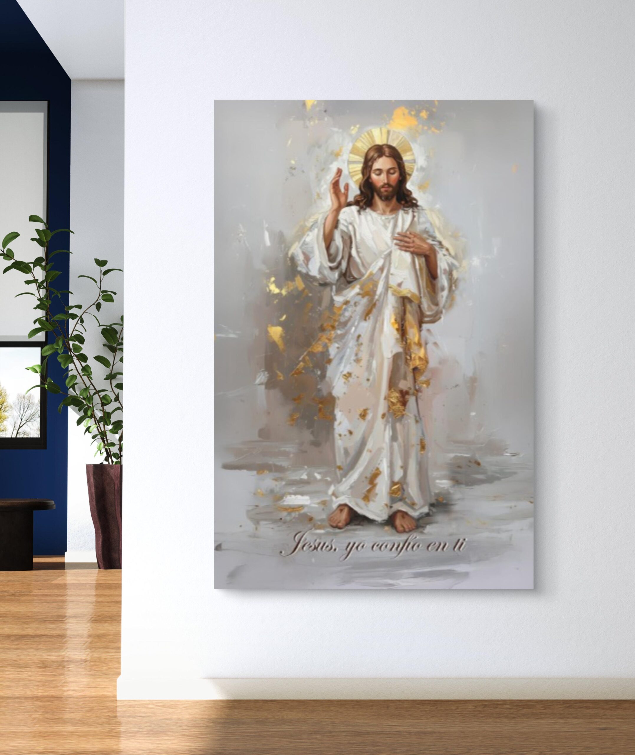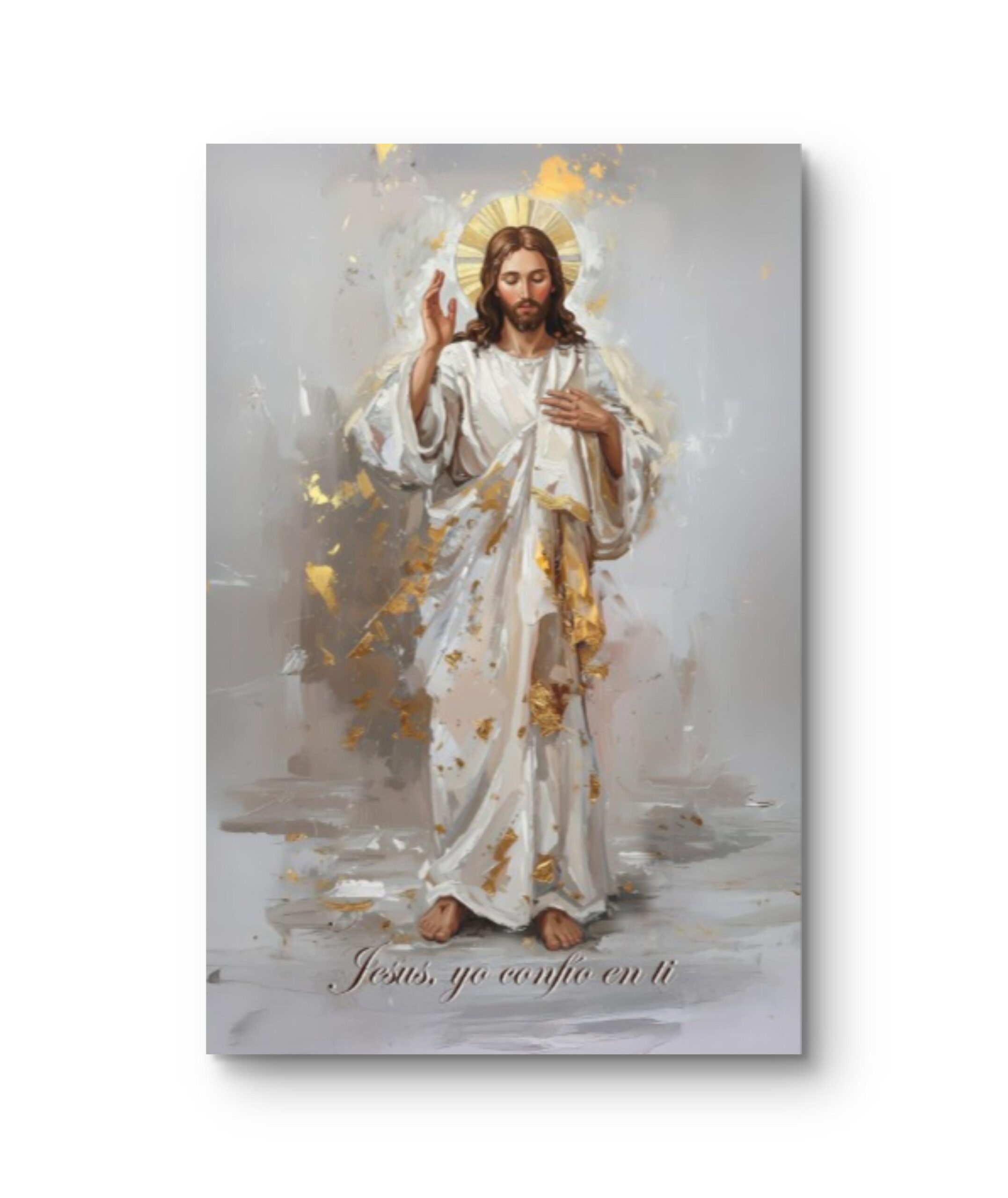 - Obra que representa la fuerza y la protección divina. Con detalles en hojilla de pan de oro, este cuadro combina elegancia y espiritualidad en una pieza imponente que ilumina cualquier espacio. Ideal para quienes buscan belleza, poder y paz en su entorno.
